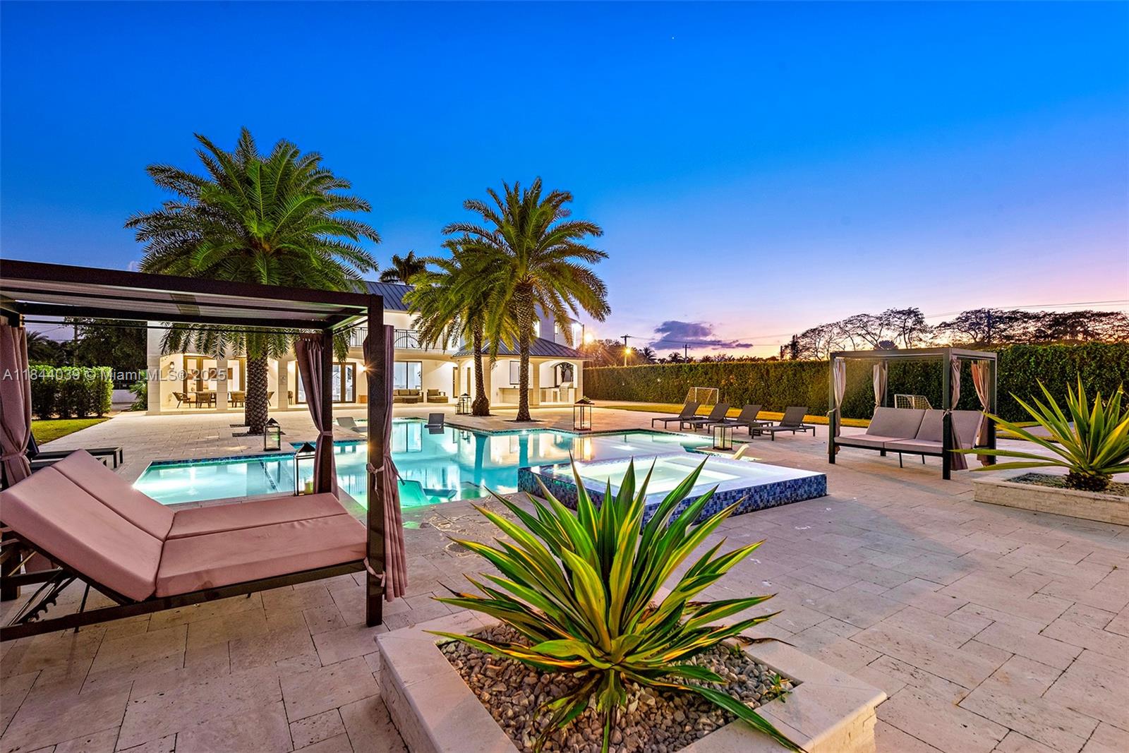 The perfect blend of Mediterranean charm and Modern design in this turn key 7br/4-ba estate nestled on a lush, gated 1+ acre lot.