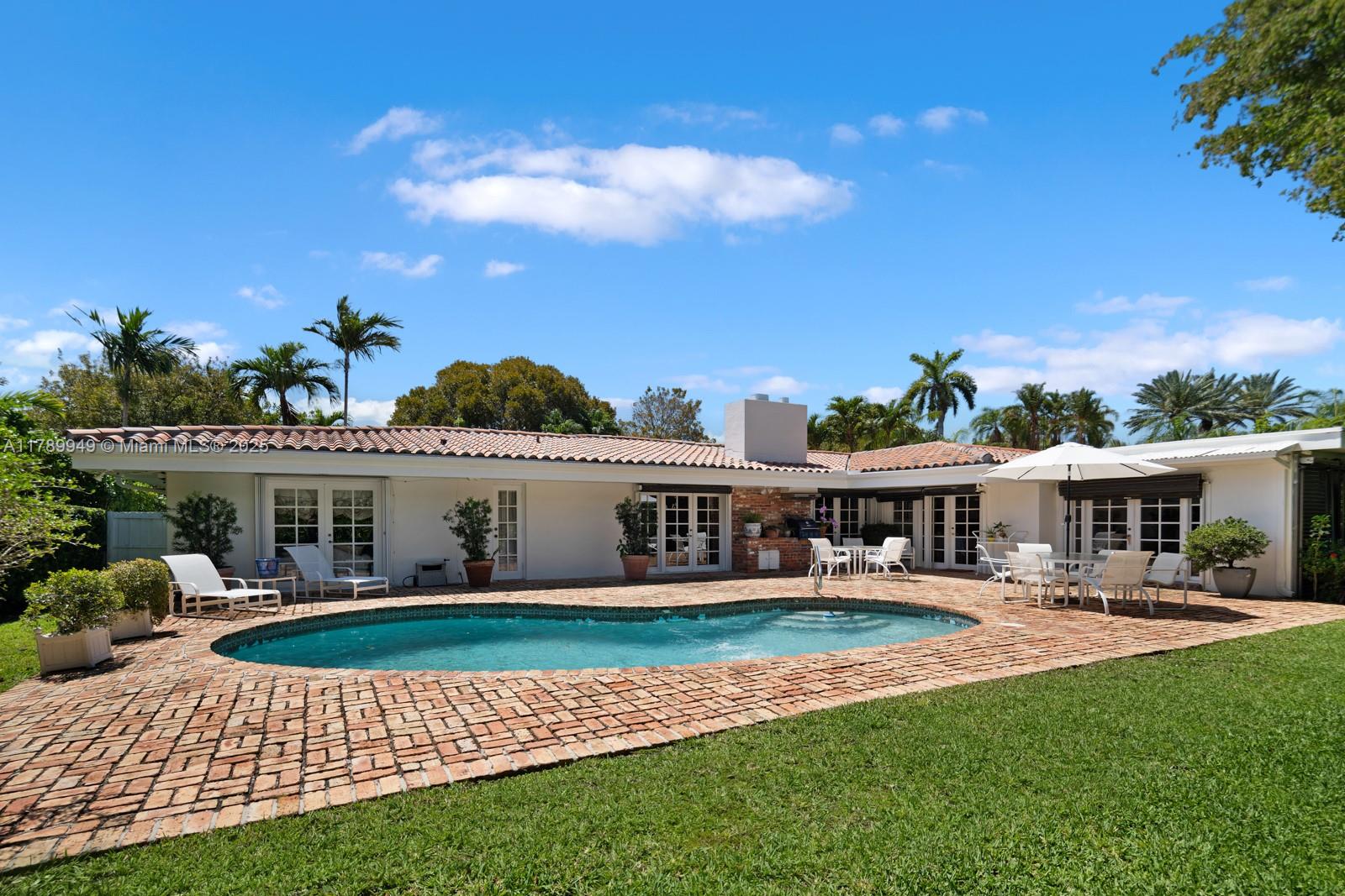 CAPE FLORIDA SUB SEC 1 PB 68-81 W20FT OF LOT 5 & ALL LOT 6 BLK 1 LOT SIZE 100.000 X 120 OR 13037-1466 0986 1 This home is nestled on the serene and picturesque Island Drive. Set on an oversized lot, it boasts a stunning backyard and a private pool area perfect for relaxing or entertaining. Abundant natural light fills the interior, thanks to French doors that surround the living spaces, offering beautiful views of the garden and pool from nearly every angle. The home features three spacious bedrooms and three bathrooms, with the potential to convert an additional space into a fourth bedroom. Dining Room Chandelier excluded from sale.