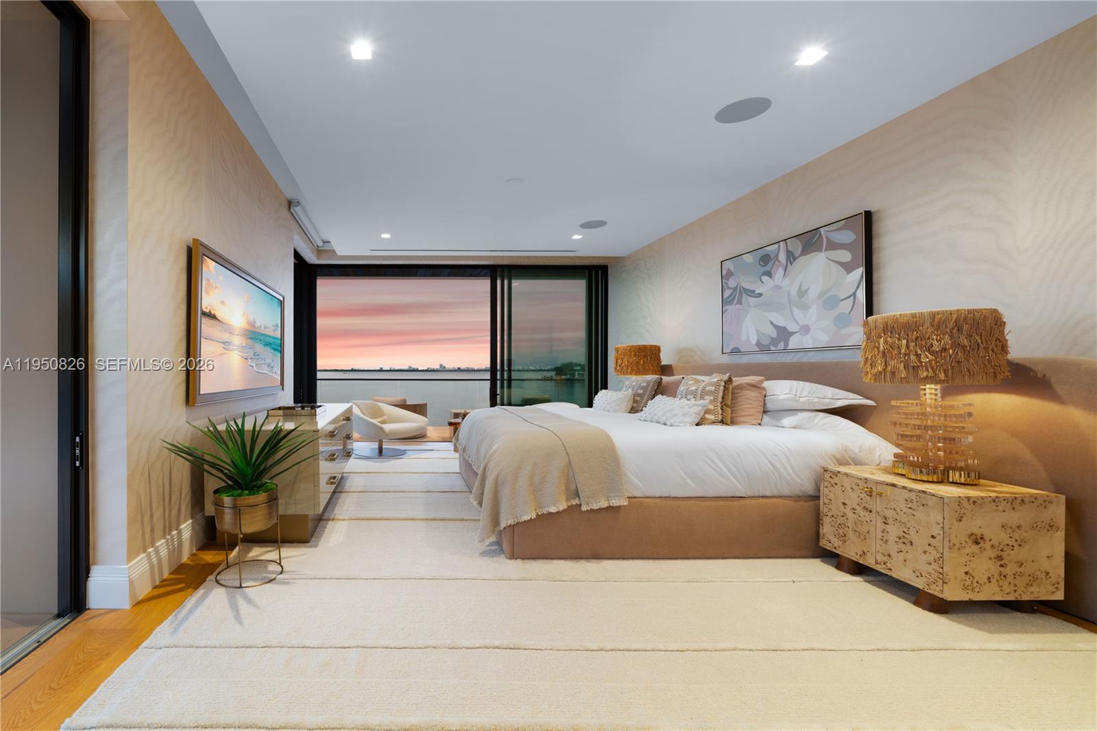 SAN MARCO PB 9-21 LOT 10 BLK 2 LOT SIZE IRREGULAR OR 19764-2625 05 2001 4 MODERN WATERFRONT RESIDENCE FEATURING CURATED LUXE INTERIORS SITTING ON THE OPEN BAY + CITY VIEWS ON THE EXCLUSIVE VENETIAN ISLANDS BY STRANG DESIGN! 5 beds + double offices & theater, 5 full baths + 2 powder rooms spanning 8,048 Adj SF living area on a 13,382 SF LOT w/ 104 FT of waterfront. Dramatic double-height entry & entertaining areas feature 25’ ceilings w/ custom Bocci chandelier & Nella Vetrina Italian doors + custom hidden bar. Chef’s kitchen w/ Wolf appliances, including gas range, double oven & coffee station. Sub-Zero fridge & wine storage. Ground-floor office, convertible to a bedroom, wrapped in Phillip Jeffries wallpaper + floor-to-ceiling built-in bookcases. Theater w/ State-of-the-art AV system featuring Bang & Olufsen surround sound system, Sony 4K HDR projector + separate wet bar & fridge. Primary suite w/ private terrace overlooking the Bay & City lights. Dedar wallpaper + dual walk-in closets. Primary bath w/ double vanity & electric frosted smart glass for privacy. Gym w/ PENT Equipment. Expansive Outdoor area w/ infinity-edge pool, outdoor kitchen w/ gas range + ipe dock. Rooftop terrace w/ open views of Miami and the Bay w/ storage & drink fridge. Smart Home technology includes Control4 automation, Sonos, Lutron lighting & fully motorized blackout shades in bedrooms & common areas. Fully secured w/ a wired alarm system, leak detection, a multi-camera security system & a whole-home gas generator. Gated Driveway for up to 4 cars + 2-car garage.