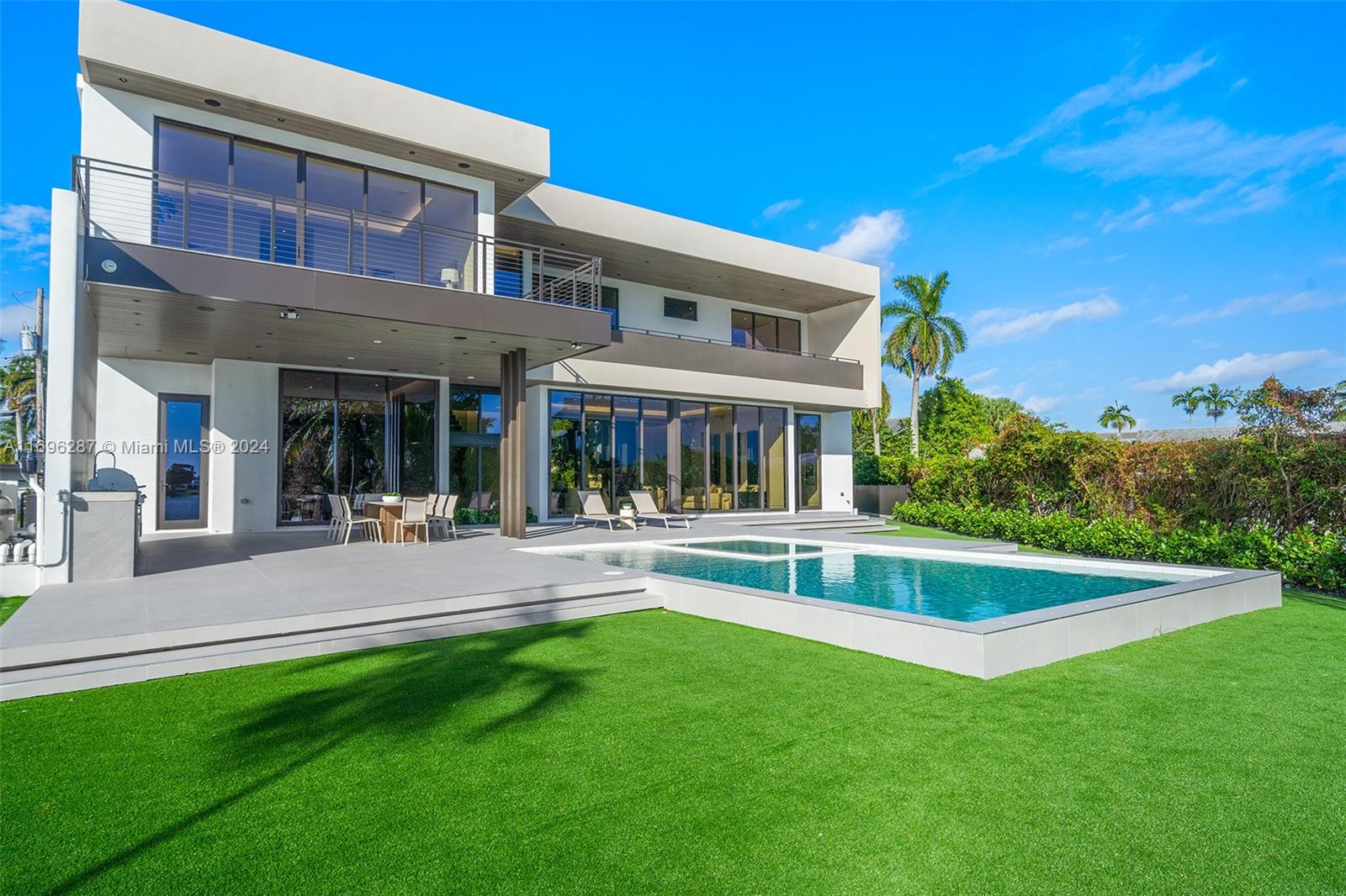 GREYKNOLL ESTATES PB 60-99 LOT 29 BLK 7 & PROPORTIONATE INT IN & TO LAKE LOT SIZE IRREGULAR This exceptional new construction boasts an amazing water view of a swimmable lake, a covered terrace, and a beautiful backyard with a pool, spa, and built-in BBQ. Inside, enjoy porcelain flooring, Poggenpohl cabinets, and sleek Inalco countertops. The gourmet kitchen features Sub-Zero & Wolf appliances, including 2 ovens, a steam oven, microwave, wine cooler, and gas cooktop. European vanities and Pianca closets elevate the interiors. Additional highlights include a front patio, smart-ready wiring for internet, audio, video, and cameras, and a WiFi-enabled rolling gate. With 12 ft ceilings on the first floor, 10 ft on the second, floor-to-ceiling windows, and 9 ft doors, this energy-efficient home with tankless gas water heaters is perfect for luxurious indoor-outdoor living.