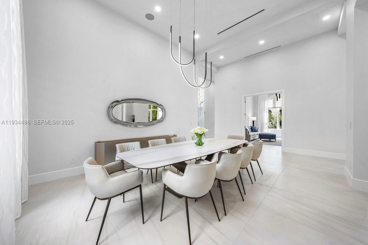 The main level showcases a chef’s kitchen equipped with top-of-the-line Miele appliances, an oversized refrigerator and freezer, and a walk-in chilled wine cellar, complemented by a formal dining room and private den. The second level features five spacious bedrooms and six bathrooms, anchored by a lavish primary suite with dual his-and-her baths. Designed for hosting, the third level offers a game room, media lounge, and full bath, all connected seamlessly by a private elevator.