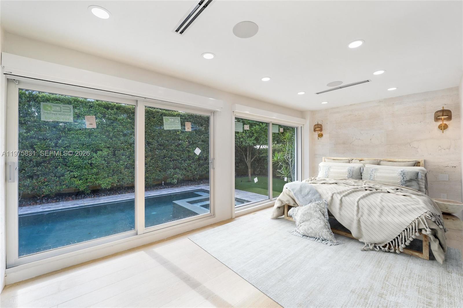 19 53 42 PARK PLAZA PB 44-61 LOT 20 BLK 2 LOT SIZE 75.000 X 110 OR 15834-2308/9 0293 4 COC 23542-3083 07 2004 1 Stunning 4-bed, 3-bath home located in guard-gated Morningside. Remodeled in 2024, this 2,586 sqf home boasts a modern design with high-end finishes throughout. Open concept layout featuring a gourmet kitchen with Sub-Zero/Miele appliances and a quartzite island, laundry room, built-in cabinetry, electric blinds, 2 A/C units, metal roof and a beautiful backyard. Master suite offers floor-to-ceiling windows overlooking the pool, custom-built walk-in closet and travertine en-suite bath. Large-sized bedrooms filled with natural light and custom cabinetry. Beautifully landscaped backyard combines a zen garden, a 40 ft marble pool, spa, Sonos speakers, security cameras, pool heater and 4-car parking in driveway in a fully-fenced lot. Available 4/15, very easy to show