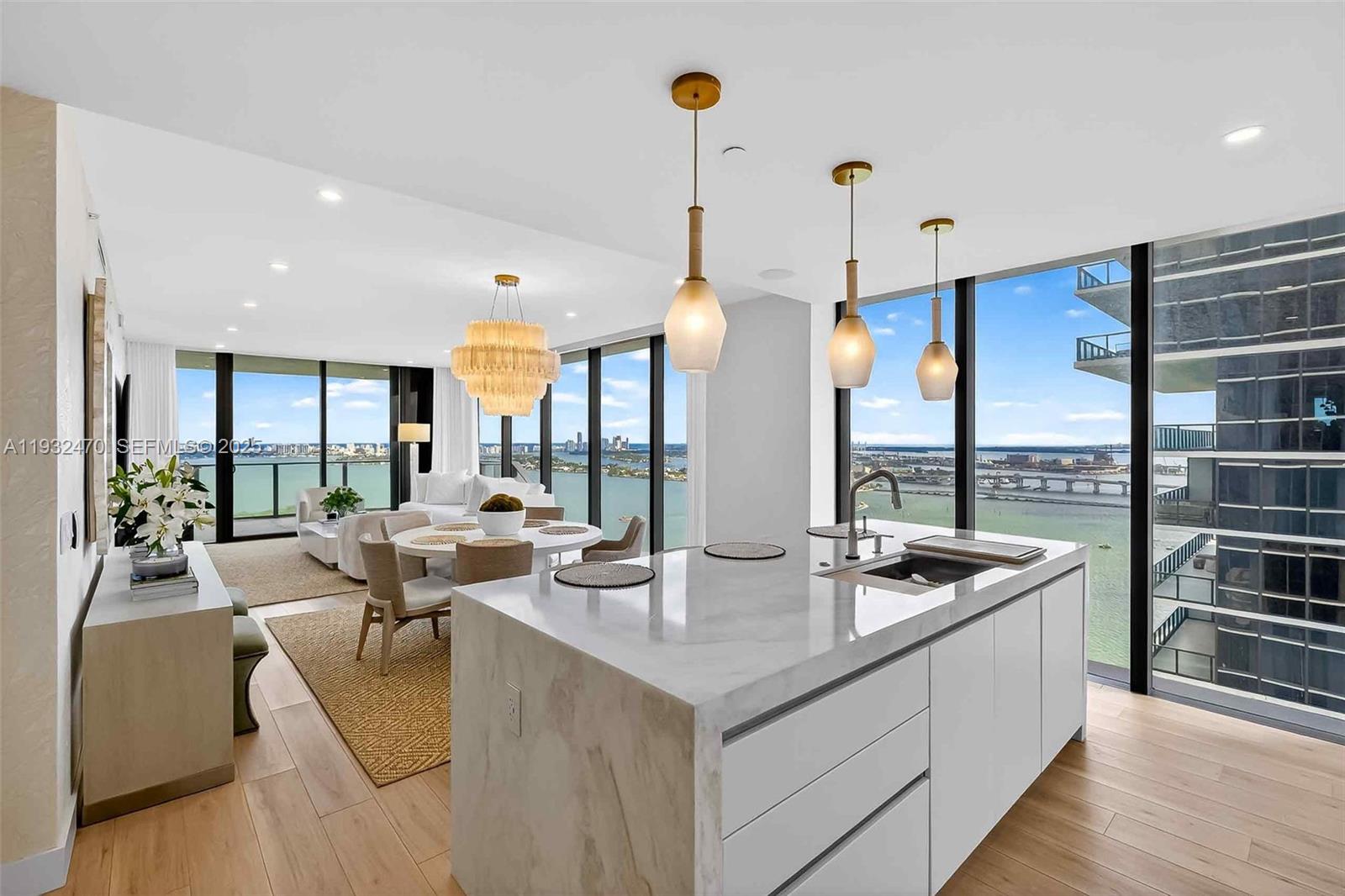 This ultra-luxury, fully furnished 4-bedroom waterfront residence is impeccably designed by award-winning interior designer DLT Interiors. Enjoy breathtaking, unobstructed views of Biscayne Bay through floor-to-ceiling windows, an open-concept layout ideal for entertaining, and a sleek modern kitchen with Thermador and Bosch appliances. A state of the art media room featuring a 100” TV, complete with surround sound and Sonos music system throughout home.
