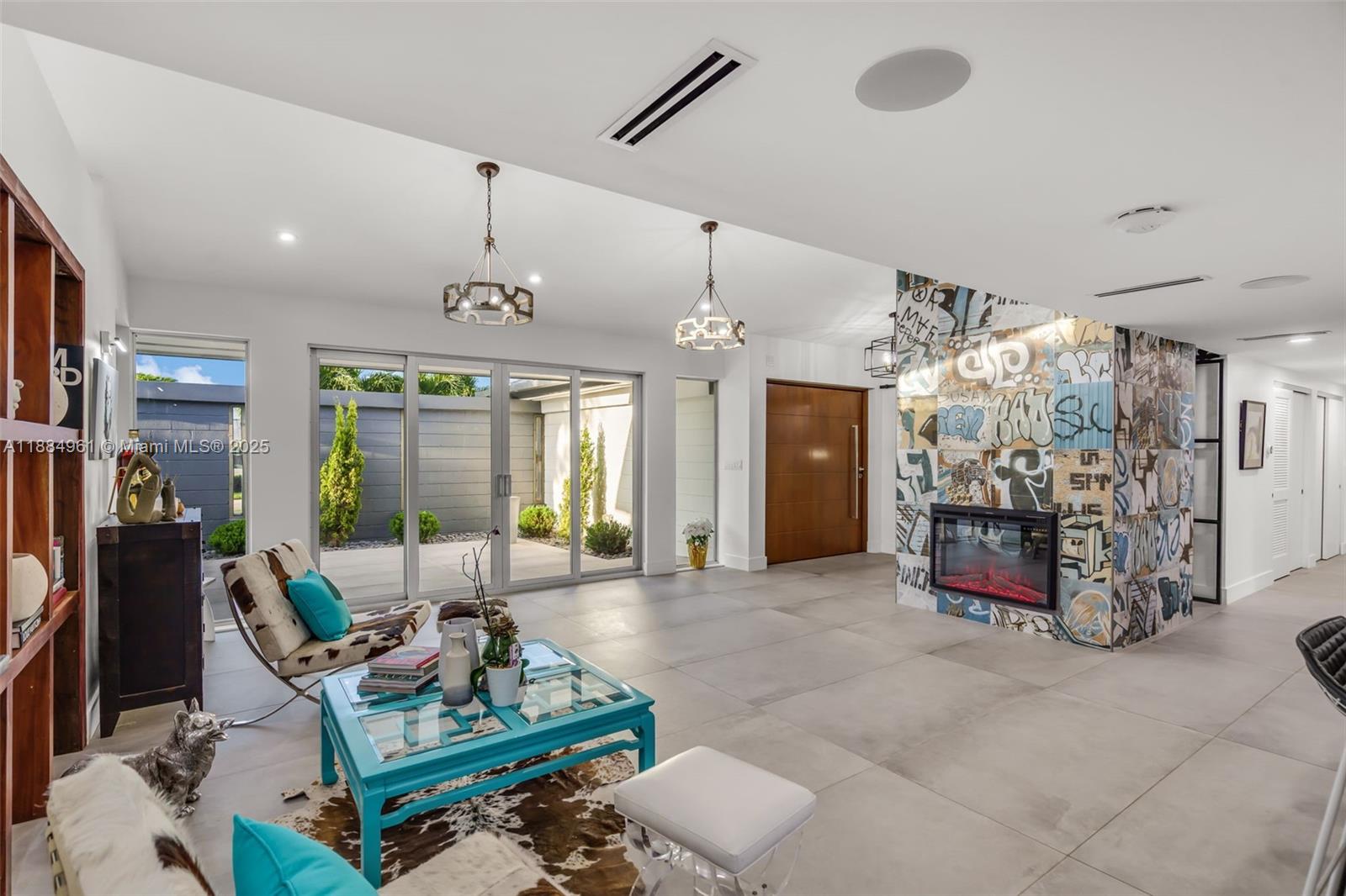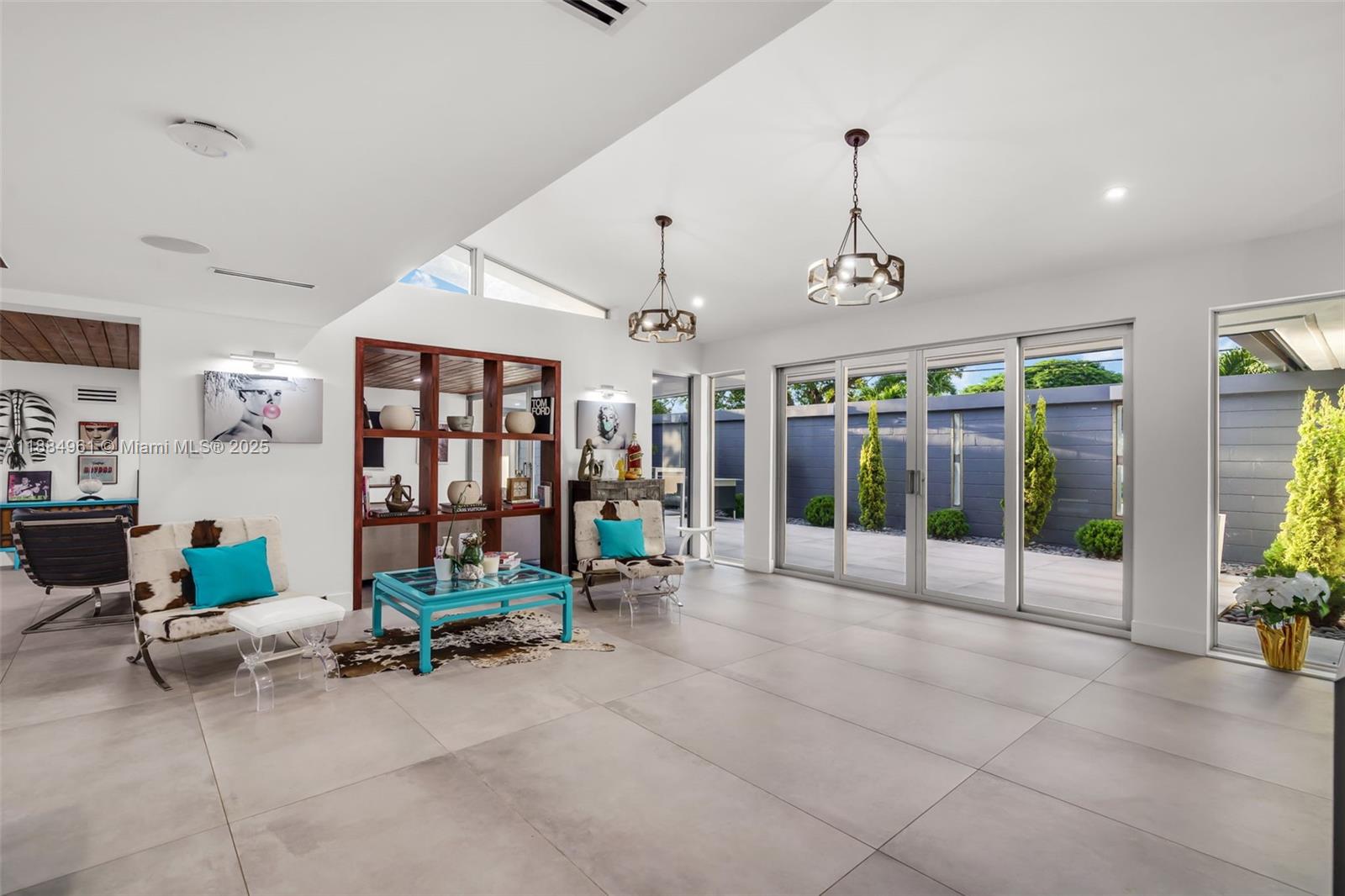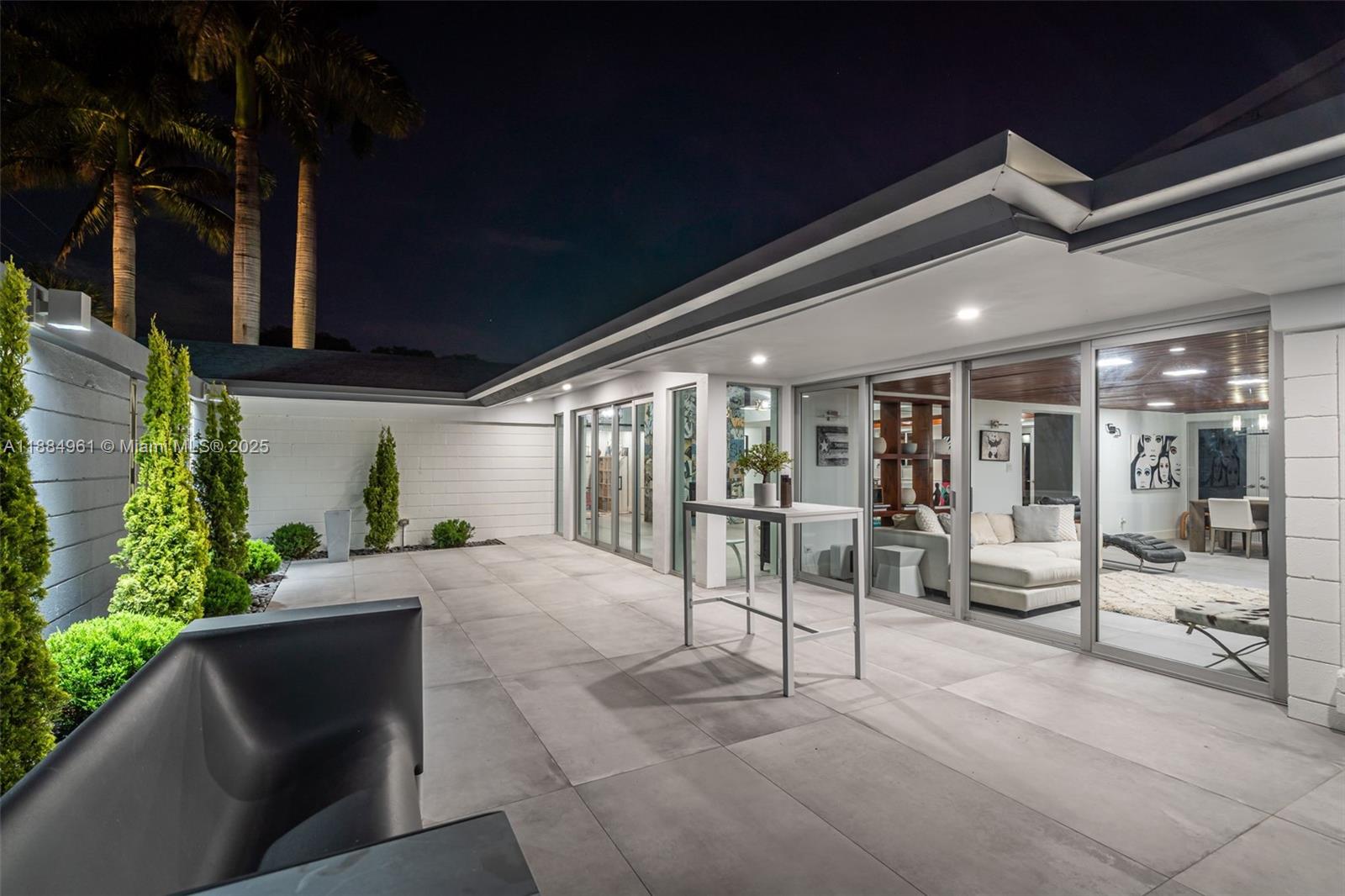 26 54 40 COLLEGE MANOR PB 72-57 LOT 3 LOT SIZE 140.000 X 140 OR 19623-900 04/2001 4 COC 23347-3703 05 2005 1 Arrive to a reimagined midcentury modern where architecture, light, and ease set the tone. Clerestory/trapezoid impact windows animate the great room; a statement fireplace warms the scene. With one glide, a full-height glass wall opens to the front terrace. Out back, a deep L-shaped terrace surveys a resort pool with sun shelf and spa, made for twilight gatherings. The panel-ready kitchen centers on a massive entertaining island and Miele coffee station; a separate temperature-controlled wine cellar awaits your collection. Everyday comfort via Control4 automation, integrated audio, three-zone HVAC, and Aqualink pool controls. Serene primary with vaulted ceilings and private outdoor shower. Private guest suite with steam shower. Fenced side-yard dog run, 2-car garage, room for boat and RV.