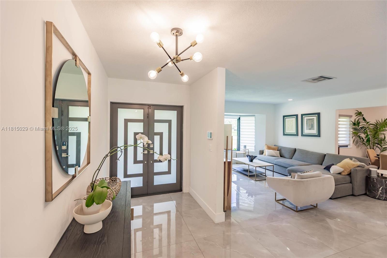 Updated home in the Baptist Hospital area on a 3/4 acre cul-de-sac lot with 4,051 sq. ft. Features hurricane impact windows and doors, formal dining room, separate great room, and a designer kitchen with premium appliances.Floor plan includes 4 bedrooms, 3.5 baths, plus a guest or housekeeper’s room, inside laundry, and a large kids’ playroom. Bedrooms offer finished closets, recessed lighting, and 30-inch porcelain floors. The primary suite has three closets, a sitting area, and a spa-style bath with a free-standing soaking tub. The living room opens to a resort-style pool with waterfall, covered patio, and fenced yard with lush landscaping. Two new A/C units. Quiet, desirable area with lower insurance and taxes than East US-1. Show all description